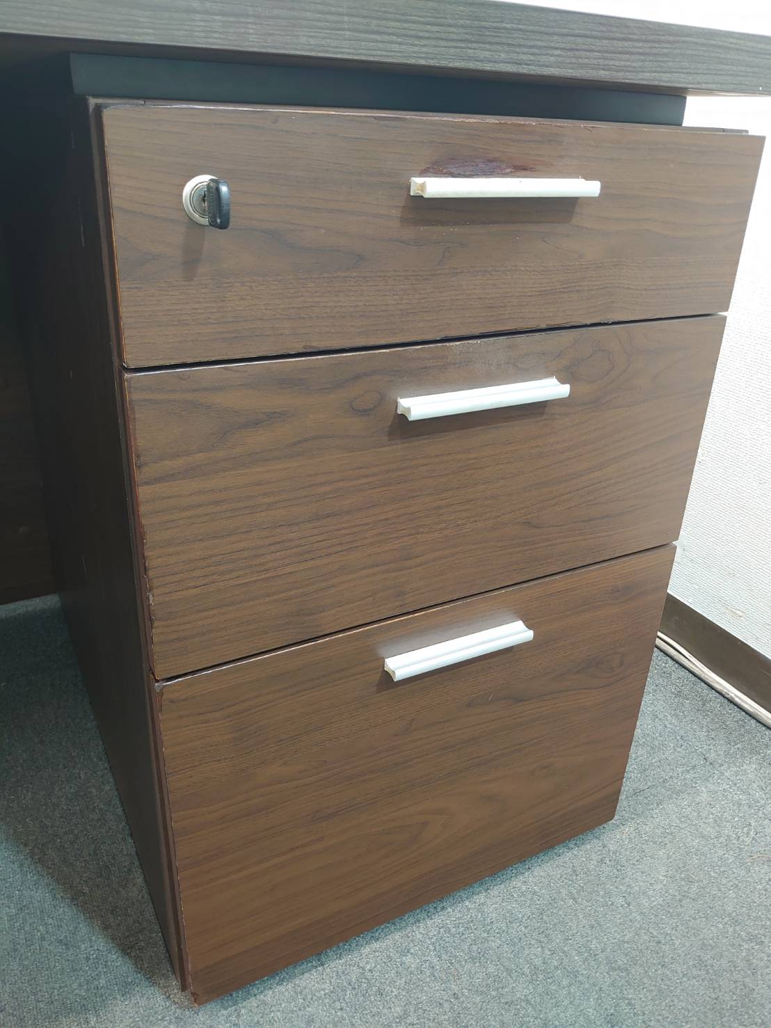 コクヨ S370シリーズ 両袖机 両袖デスク 役員デスク 高級デスク 木製デスク 役員用デスク 役員机 社長机 役員用家具 オフィスデスク マネジメントデスク エグゼクティブデスク 社長室 役員室 KOKUYO カギ付き 鍵付きデスク W1600×D850×H720 MGE-S37DLP1W 【中古オフィス家具】【中古】