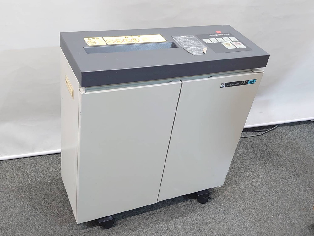 明光商会製「MSシュレッダー 231MA」は、A3サイズ対応・ワンカットクロス方式を採用した業務用電動シュレッダーです。