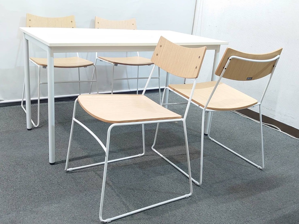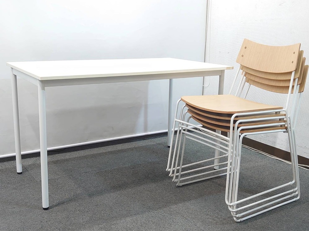 会議セット 4人用 ホワイトテーブル+スタックチェア4脚 W1200 リユース品