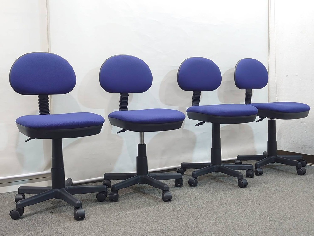 オフィスチェア 肘なし 10脚セット キャスター付き ダークブルー