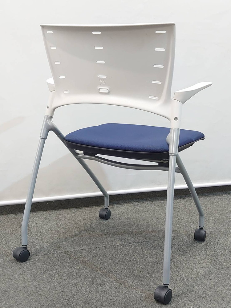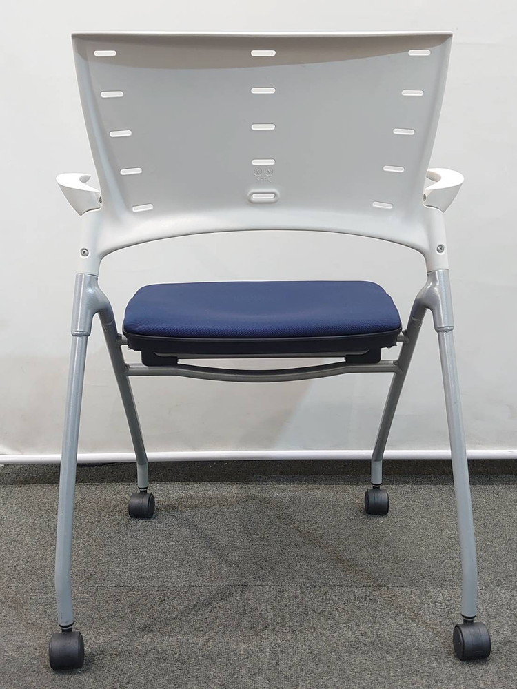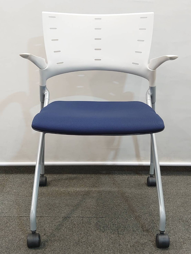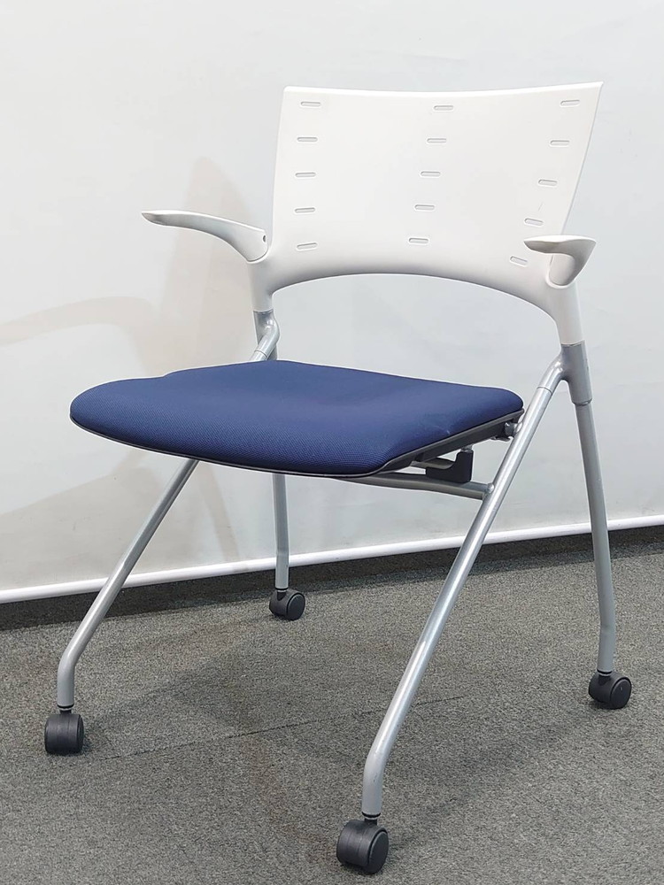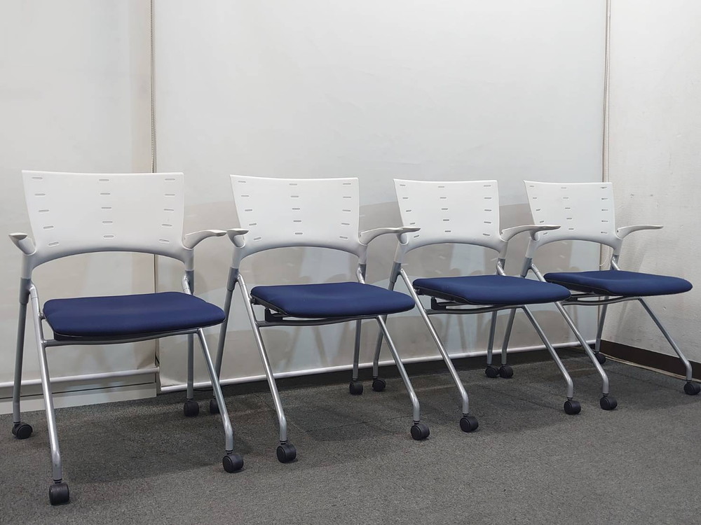 地域限定 送料無料 会議チェア 10脚セット イトーキ マノス キャスター付 肘付 ネスタブル ホワイト×ブルー 中古