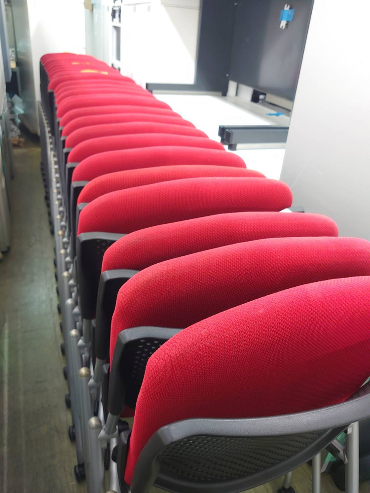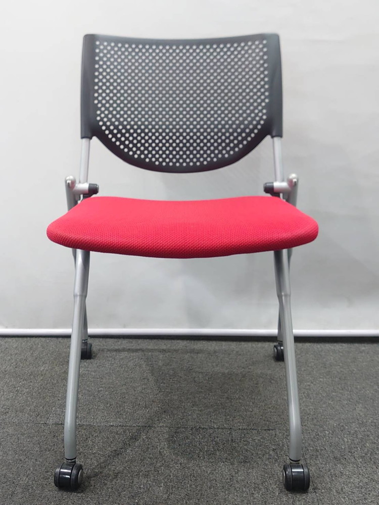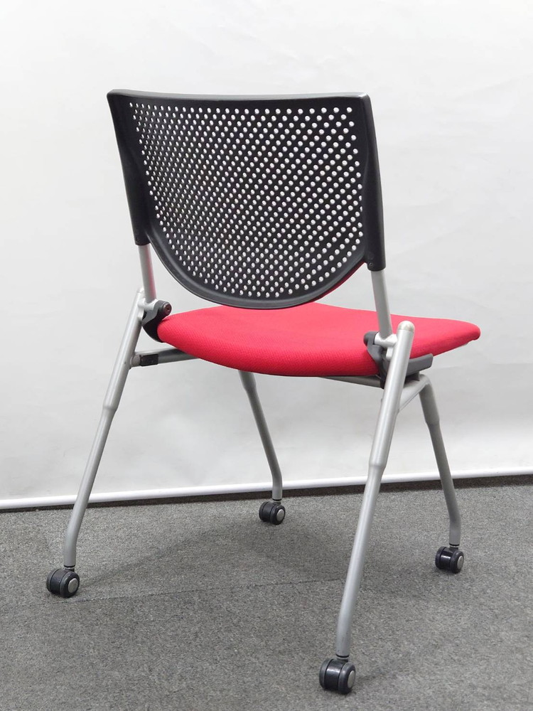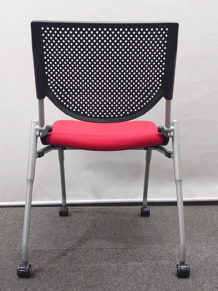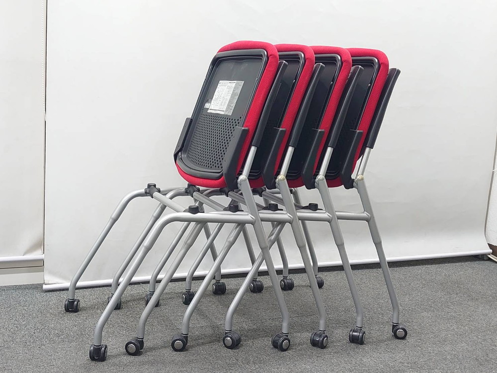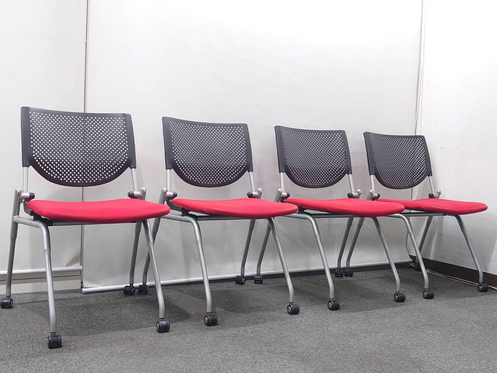 会議チェア 10脚セット オカムラ プロスタック キャスター付 肘付 ネスタブル ブラック×レッド 中古