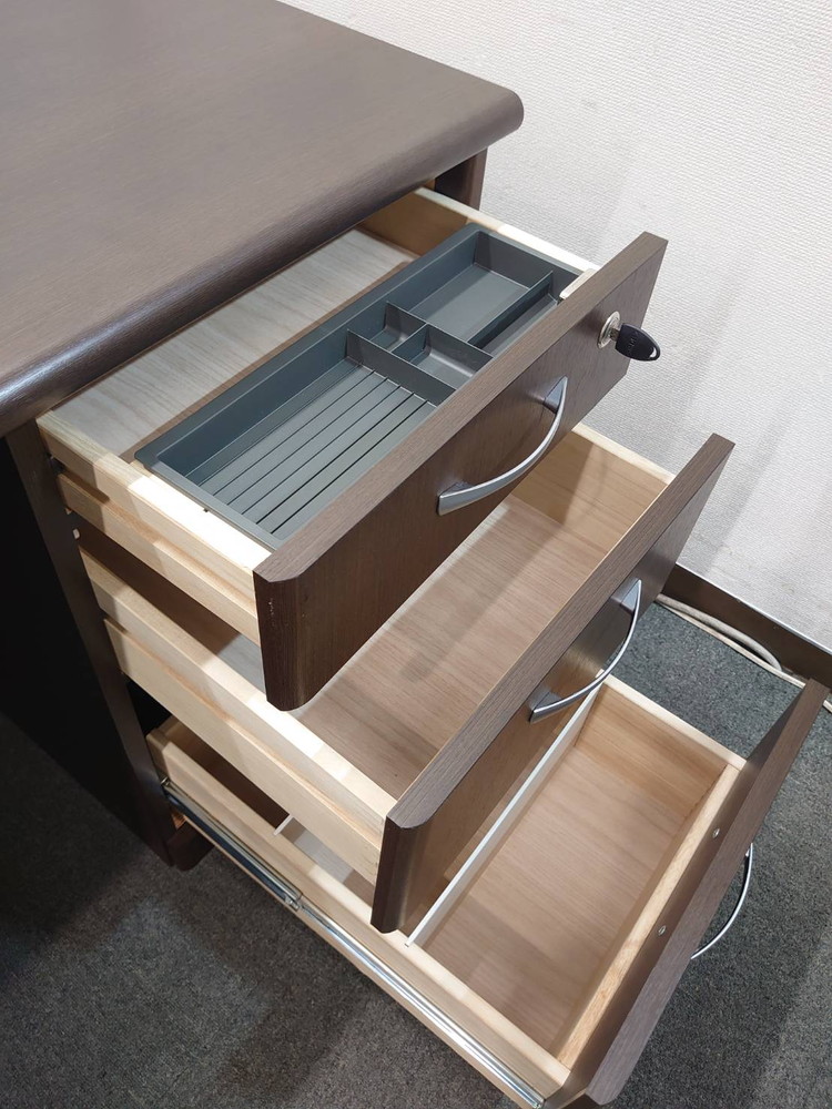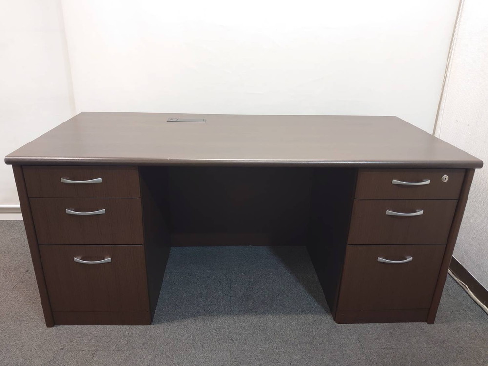両袖机 木目ブラウン W1600×D750×H720 カギ付 マネージメントデスク リユース品 中古
