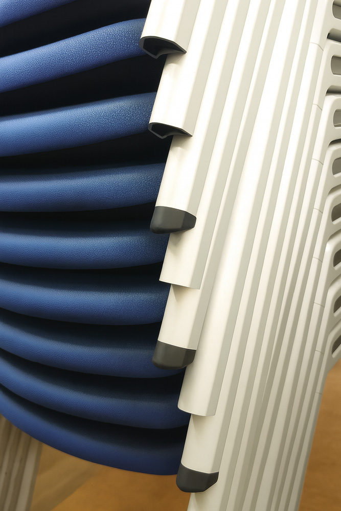 スタッキング可能な設計で、省スペース収納ができ会議室や研修室に最適です。