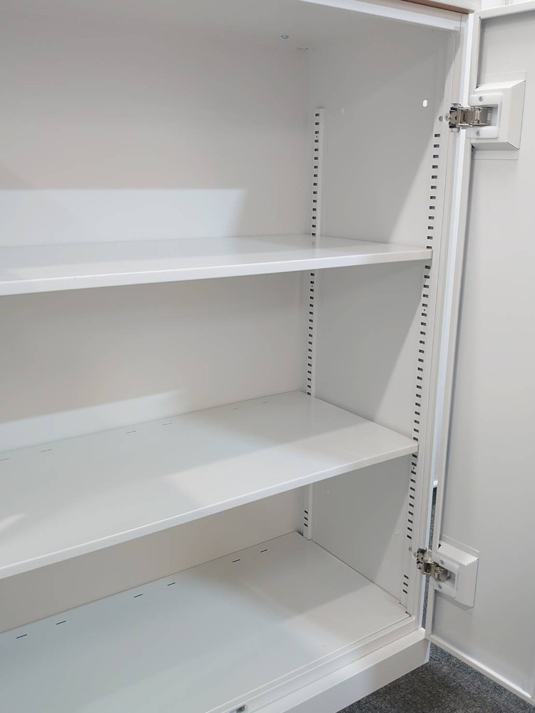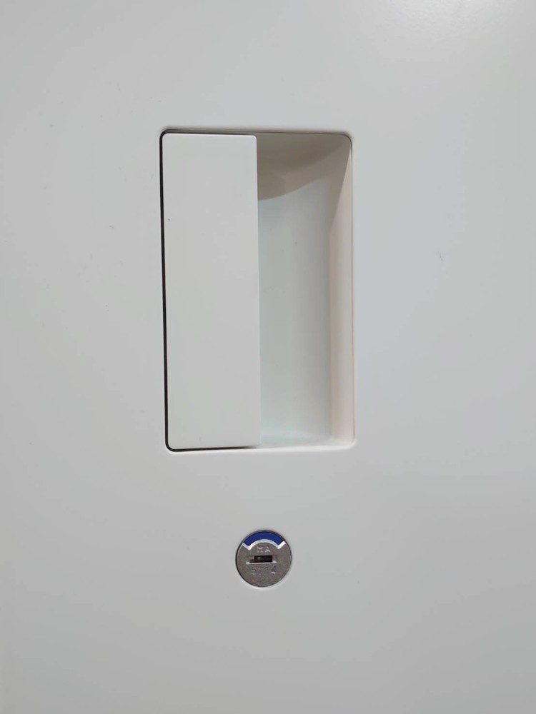 フラットで美しいデザインと機能性、安全性をすべて備えた収納の新しいスタンダード「eS cabinet エスキャビネット」シリーズ。両開き扉型はフラットでつかみやすい引き手や扉が180°開き通路でも邪魔にならないスライドヒンジを採用しています。棚板は1.58cmピッチで調節が可能なので収納物に合わせて適切な高さに設置が可能です。さらにインジケータ付の鍵で開錠・施錠が一目で分かるので、鍵のかけ忘れ防止にもなり安心です。