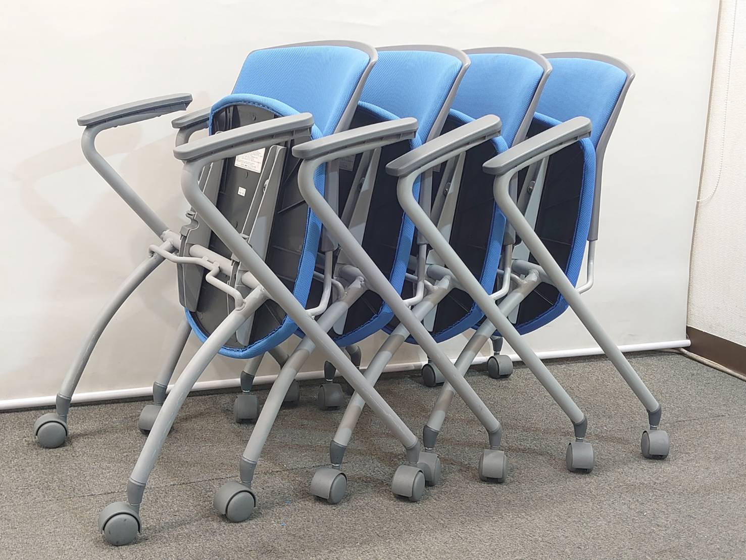 会議チェア ネスティングチェア 50脚セット ブルー キャスター付き アイコ リユース品 中古