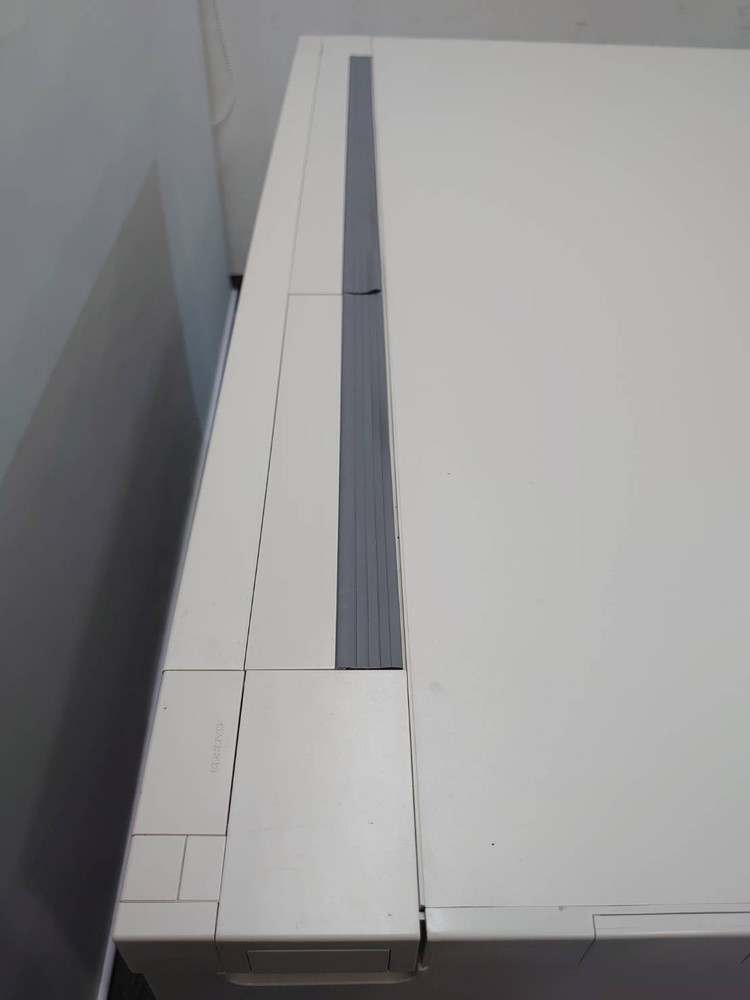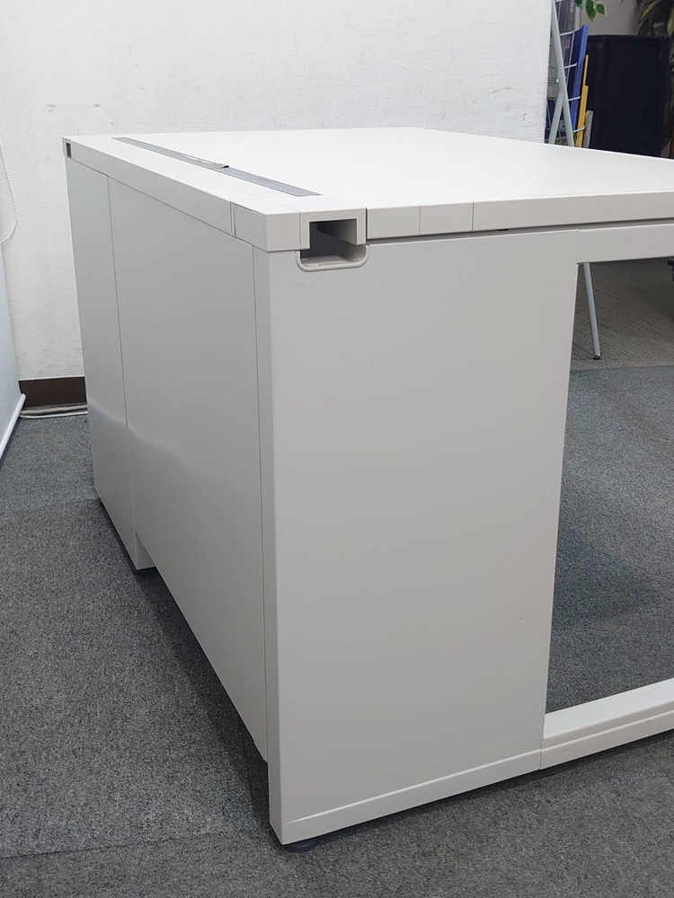 ナチュラルグレーの落ち着いたカラーがオフィス空間に調和し、リユース品としてコストを抑えつつも実用性の高い一台です。