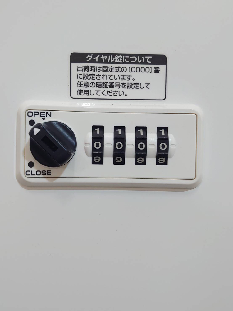 上段はダイヤル錠付き両開き書庫、下段はラテラル書庫仕様で、収納力と機能性を両立しています。