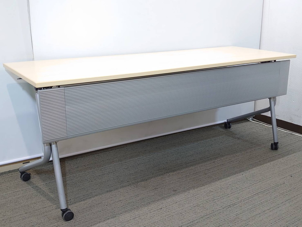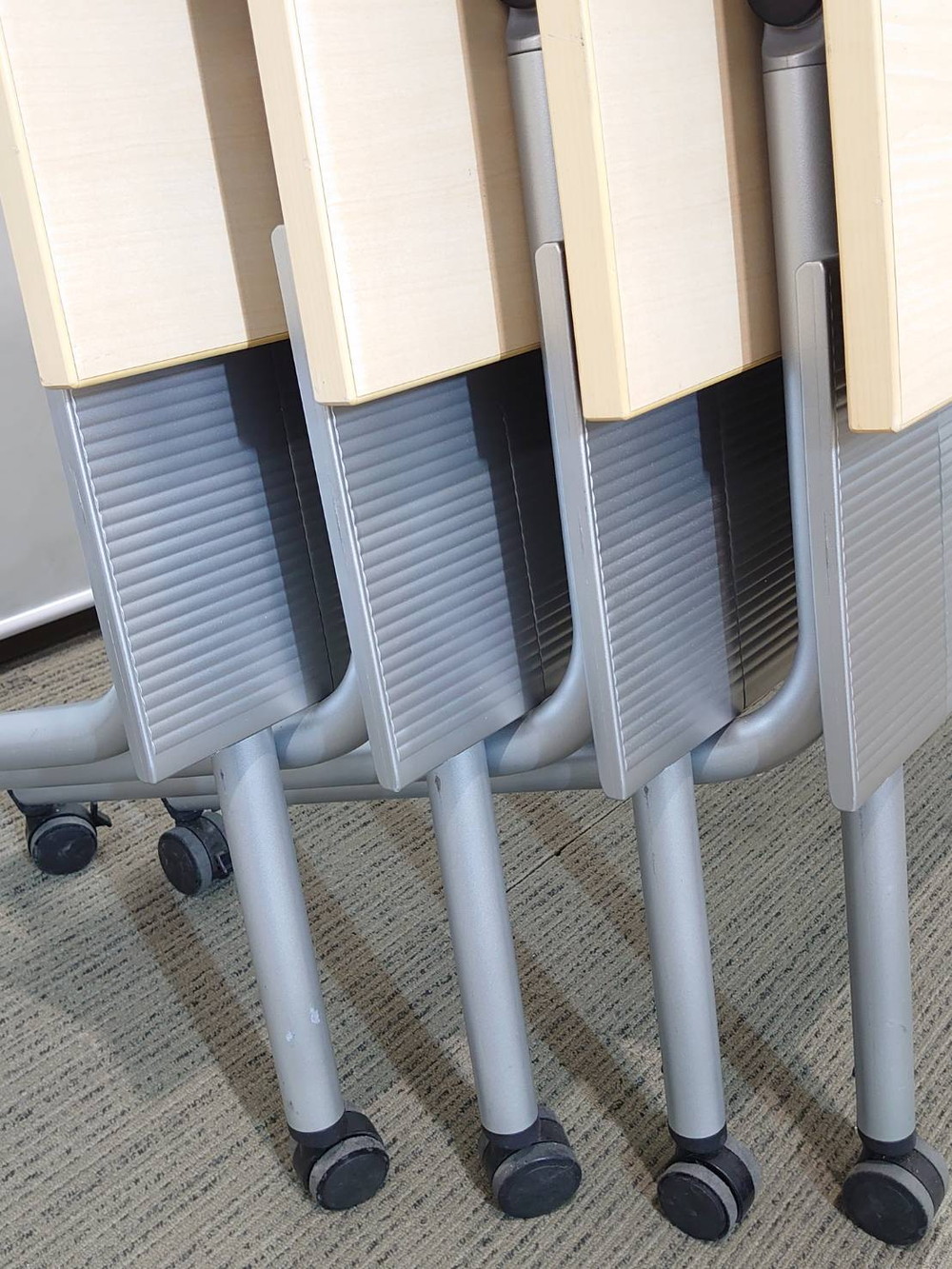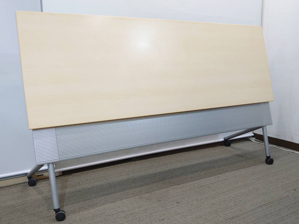 スタックテーブル 平行スタック フラップテーブル オカムラ ネスティア W1800 D600 木目ナチュラル 4台セット 中古
