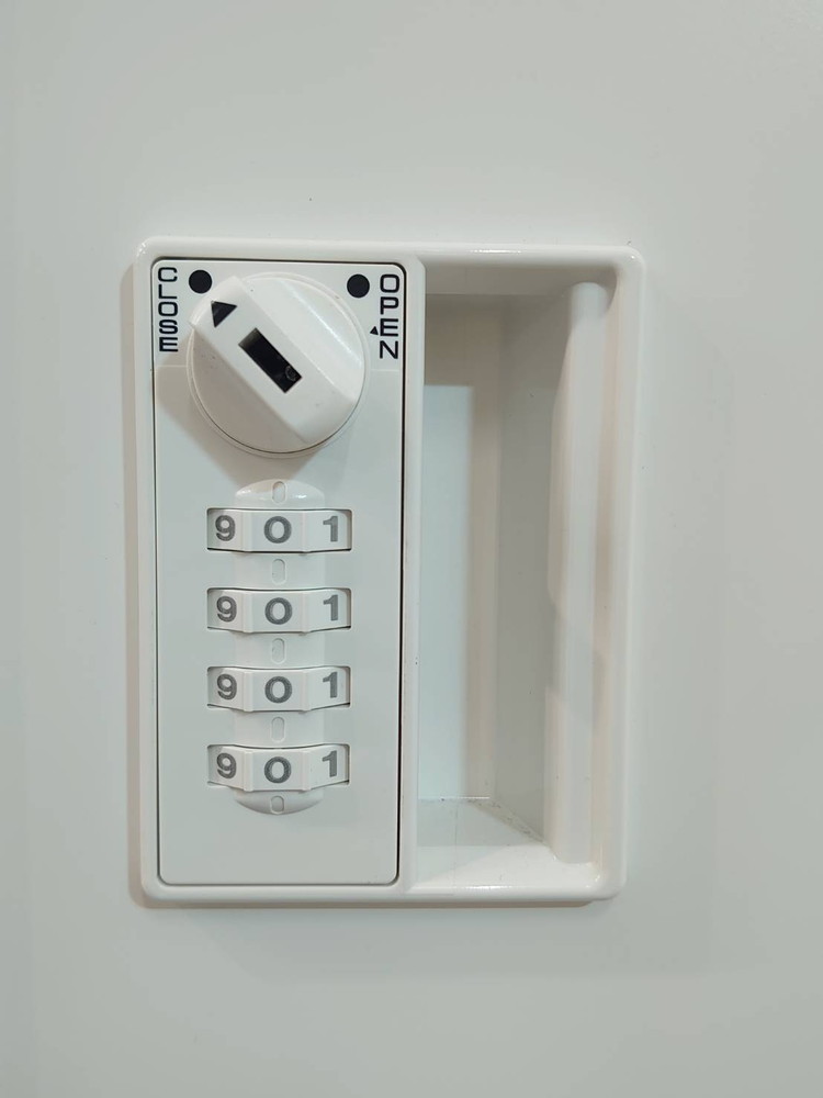 数字合わせで解錠できるダイヤル錠タイプです。非常解錠キーは付属しておりません