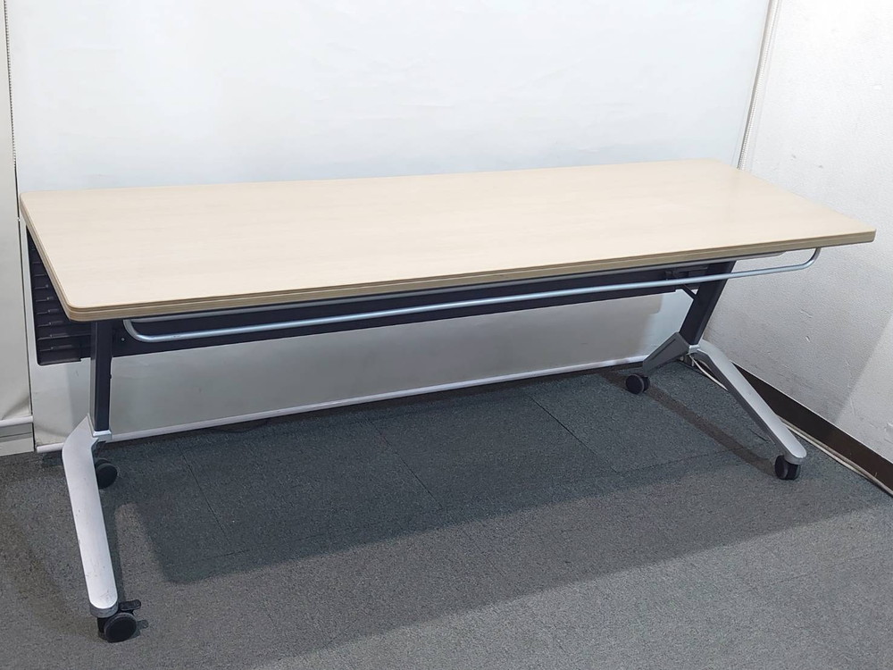 コクヨ 折りたたみ会議テーブル W1800 D600 天板ナチュラル 幕板付 中古 1台