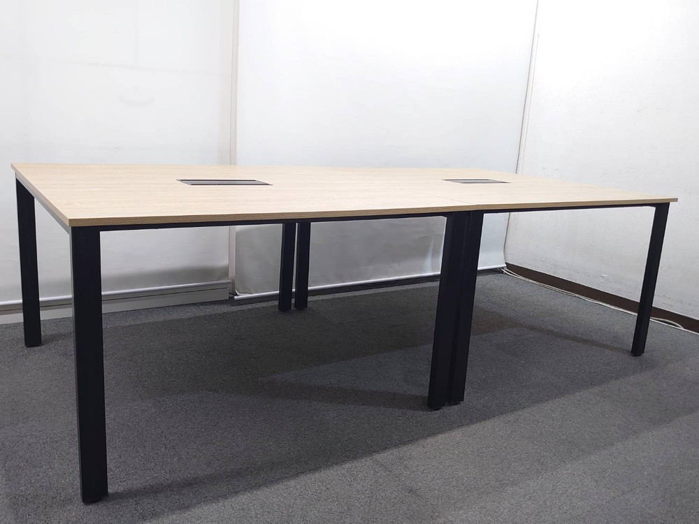 美品 フリーアドレスデスク ワークデスク W2400(1200×2)×D1200×H720 木目ナチュラル 会議テーブル ワークテーブル 中古