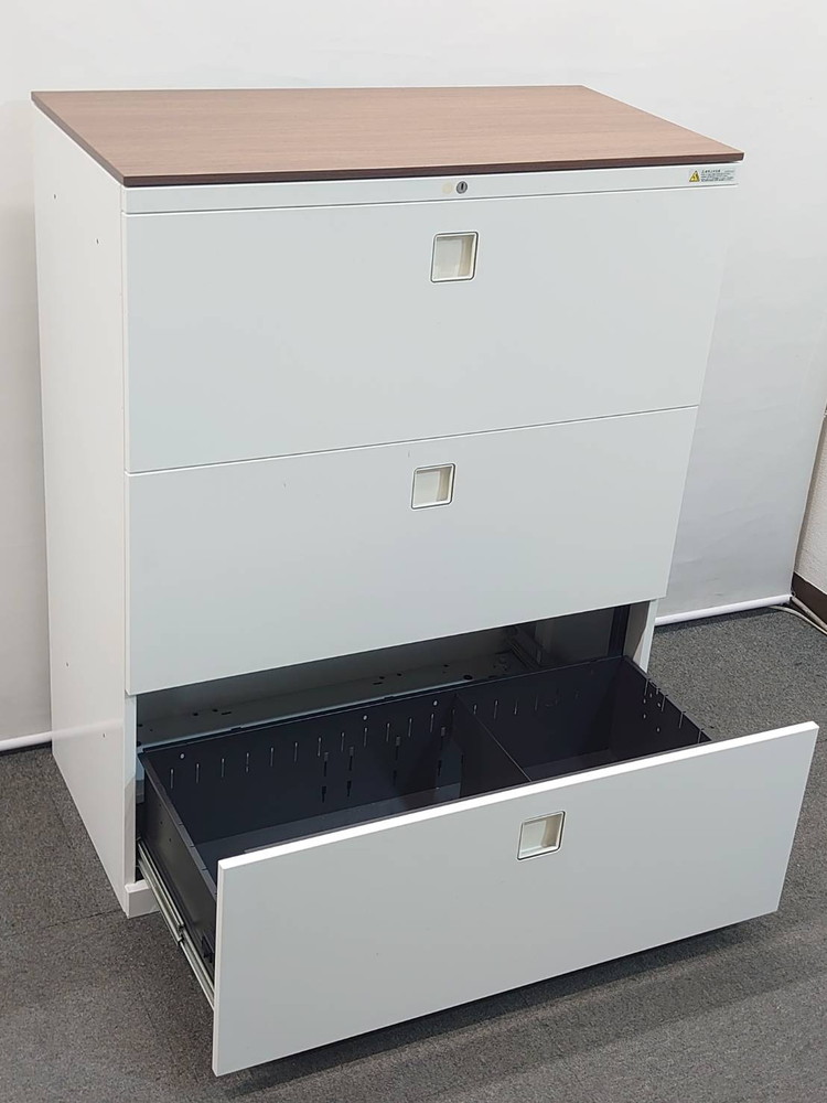 上質なスチール構造で定評のあるオカムラ「レクトライン」シリーズの3段ラテラルキャビネットです。