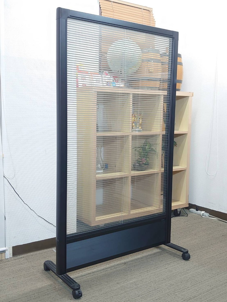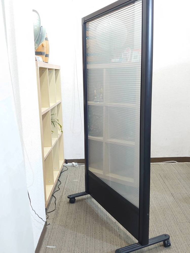 ニチベイ製のブラインド式パーティションです。キャスター付きで移動がしやすく、オフィス内のスペース区切りや目隠し用途に幅広くご活用いただけます。