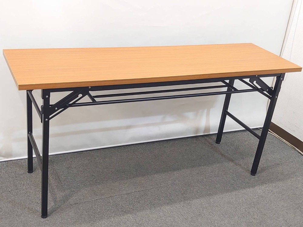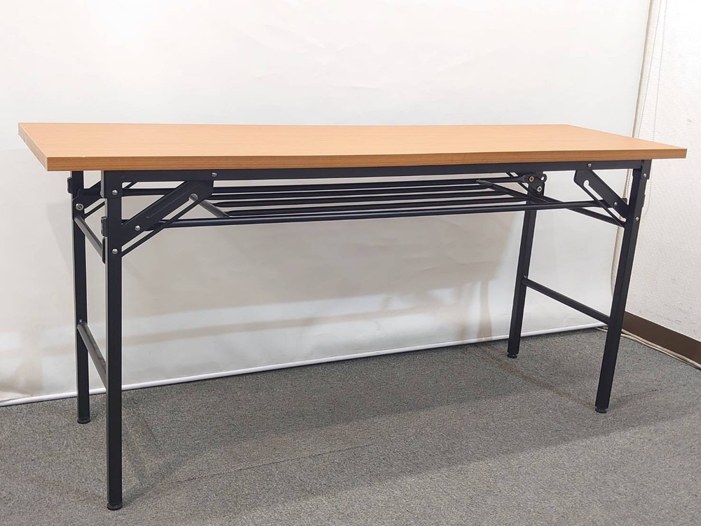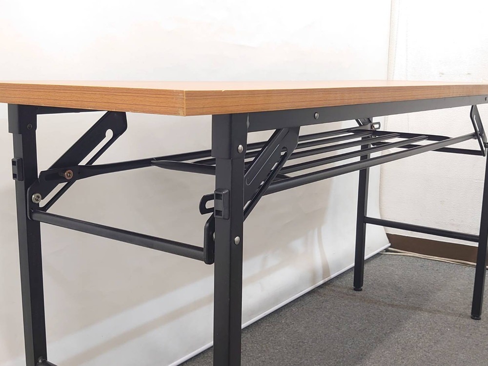 会議テーブル 折りたたみ 木目調 棚付き W1500 D450 H700 中古