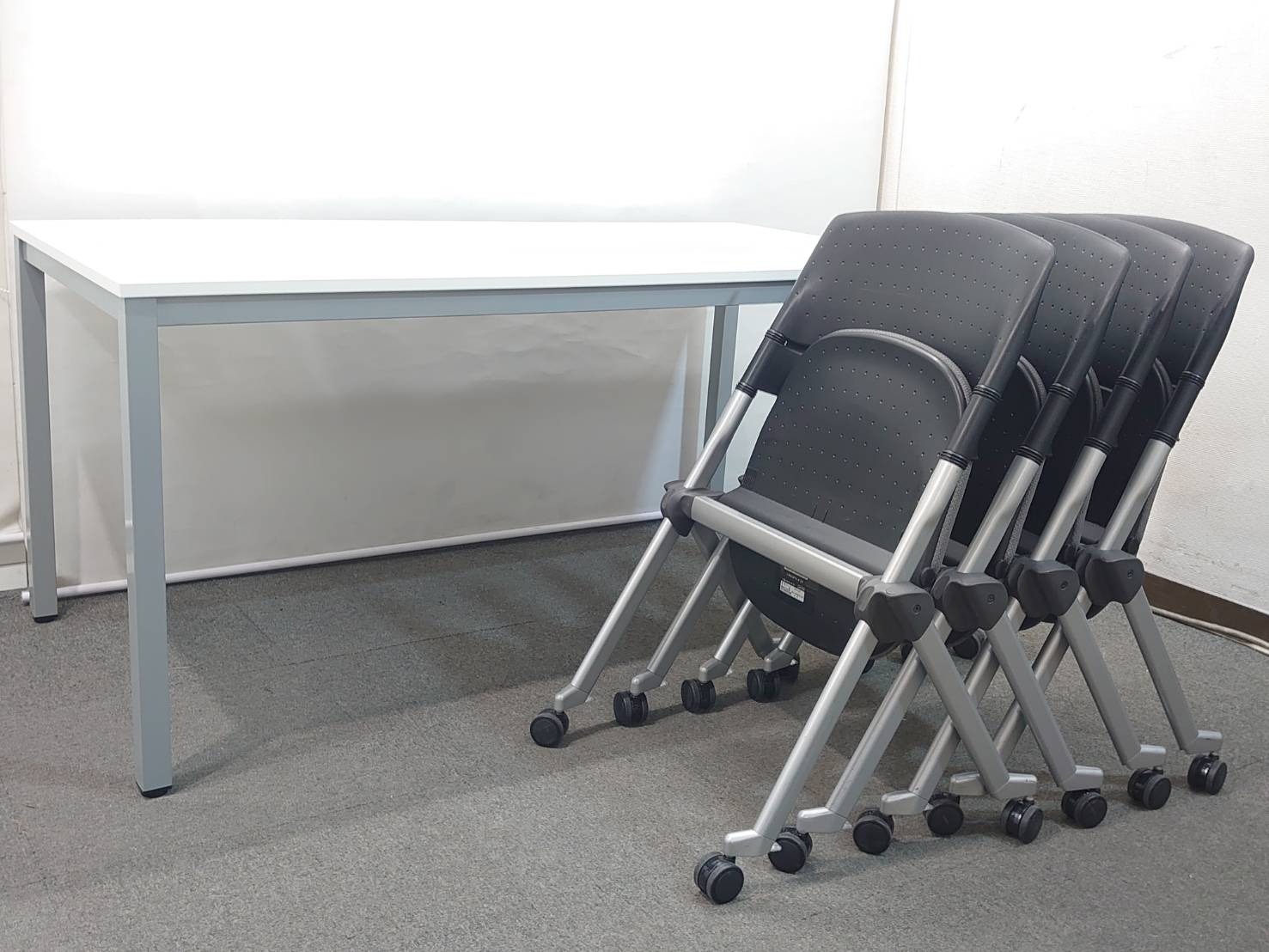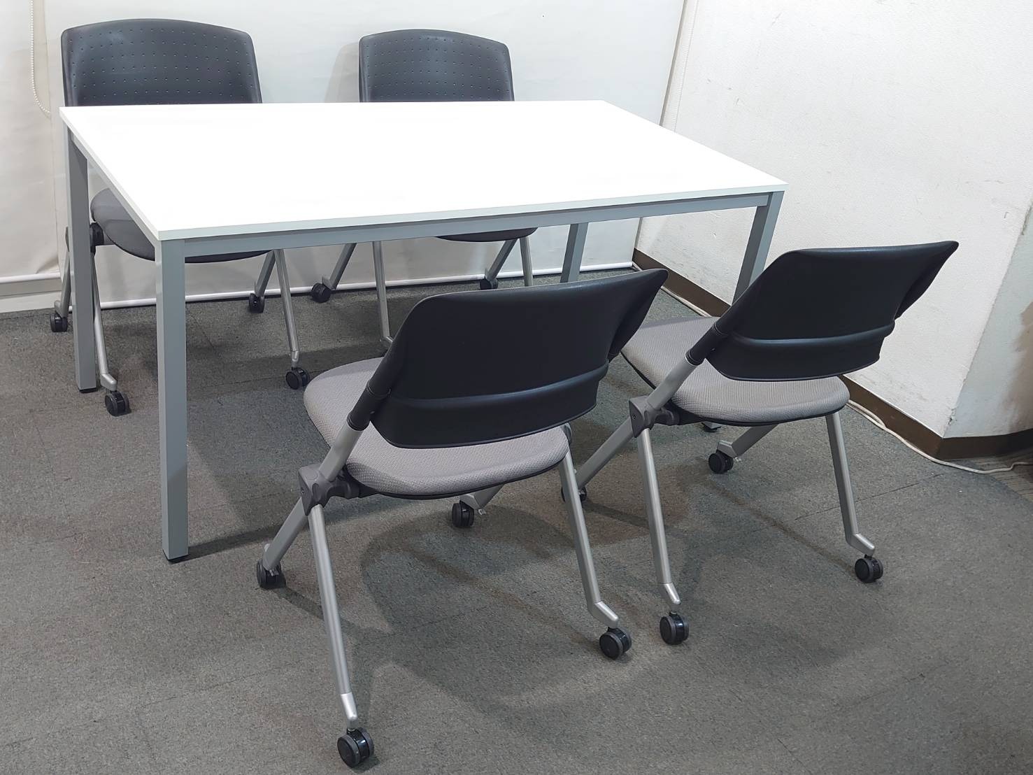 新品テーブルと中古チェアを組み合わせた、4名様用の会議セットです。