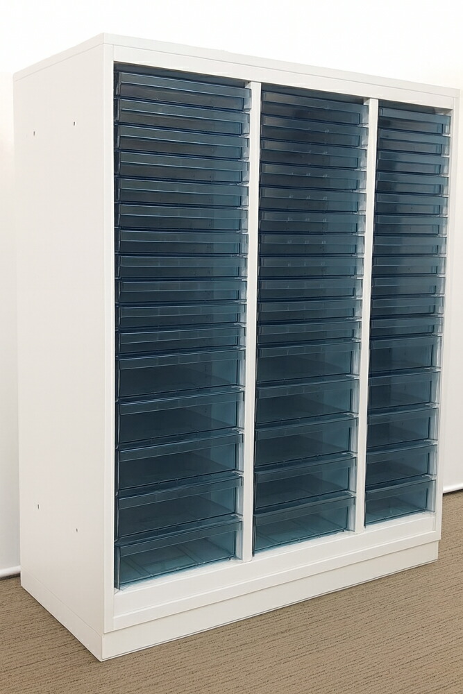 コクヨ エディア EDIA レターケース クリスタルトレーキャビネット プラスチックキャビネット A4対応 3列16段 浅深コンビ型 システムトレーキャビネット 書類整理庫 キャビネット トレーユニットシステム 書庫 書棚【中古オフィス家具】【中古】