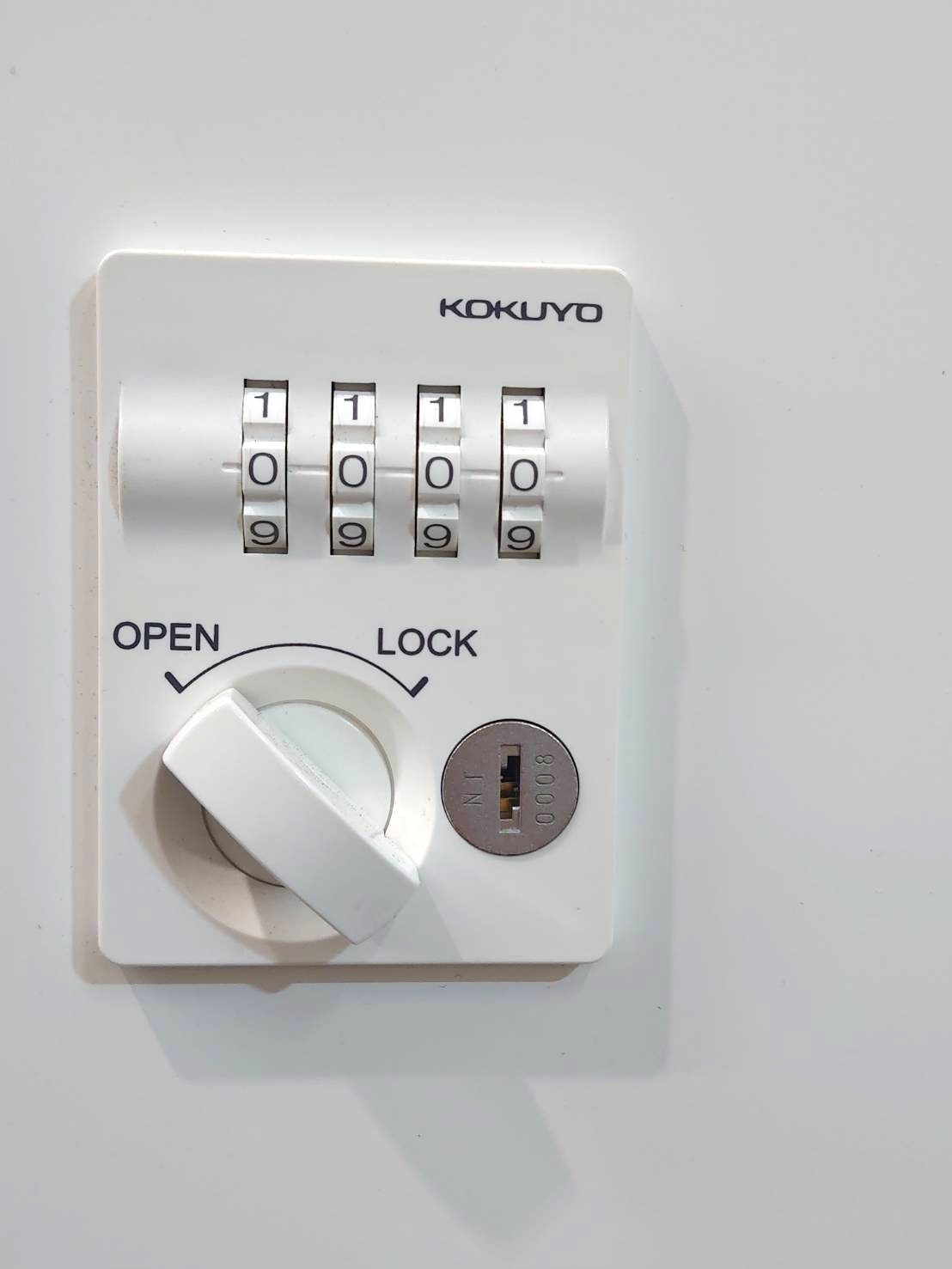 数字合わせで解錠できるダイヤル錠タイプです。非常解錠キーは付属しておりません